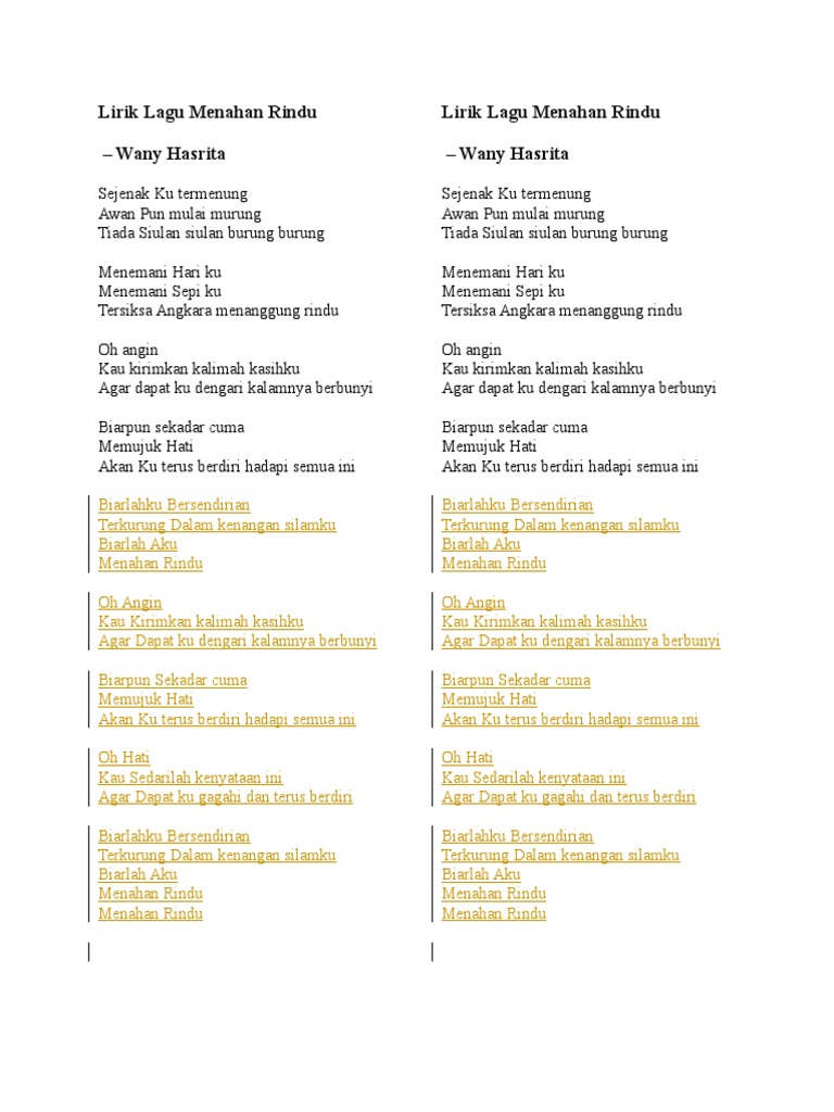 Lirik Menahan Rindu Wany Hasrita Pdf